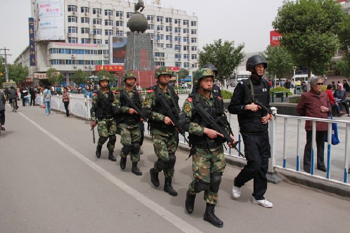 麦积分局在火车站广场军警联合巡逻维护节日治安秩序