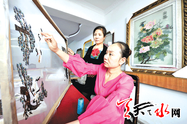 天天天水网记者【年葆东 周文涛】5月17日,天水琦丽珠绣工艺美术公司的女工在检查珠绣绣品。该公司是麦积区桥南一家集制作与销售珠绣工艺画为一体的企业,产品被誉为中国“第五大名绣”。六年间,先后培训城乡妇女2400多名,辐射带动了周边的10多个乡镇街道34个社区,已有500多名妇女在公司带动下通过珠绣脱贫致富。