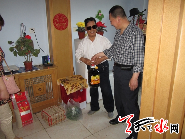 天天天水网讯 5月29日,端午节即将到来之际,石马坪街道莲园社区组织秦州区水务局、林业局、计生局、天水公路路政执法处等辖区单位的100余名在职党员志愿者开展“在联党员进社区”活动,对社区28户困难户家庭进行帮扶慰问。慰问期间,党员志愿者为困难户送去米、面、油等慰问品的同时,还与他们亲切交谈,了解生活中的困难和期盼,祝愿他们过一个愉快的端午节。党员志愿者用“一米阳光”的关怀,使社区困难户倍感温暖。 (王萍)
