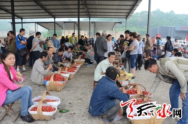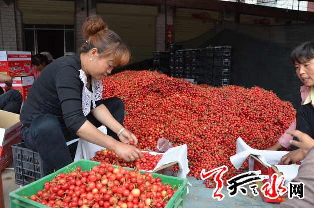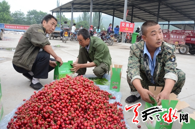 时间进入五月,当树上的大樱桃渐次发红,呈现出玛瑙般红润的色泽时,秦州区玉泉镇罗峪沟流域和太京镇、藉口镇川道区种植大樱桃的果农们便开始了一年中最为忙碌的时节。这个时候,他们或开着三轮车、或骑着摩托,穿行于果园和市场之间。在果园,他们手脚麻利地摘下一颗颗成熟的大樱桃,然后小心翼翼地放到篮子或桶子里,当可供销售的大樱桃采摘殆尽时,又马上骑车将大樱桃送到市场销售。在市场,他们兴奋而略带焦急地等待客商的光顾,当客商“相中”他们的大樱桃,又经过一番讨价还价之后,一天的劳动成果终于变成一沓钞票。这时,采摘大樱桃的辛苦更多的被销售大樱桃带来的喜悦所抵销,带着丰收的惬意,驱车回到家里,等待采摘第二天成熟变红的大樱桃。