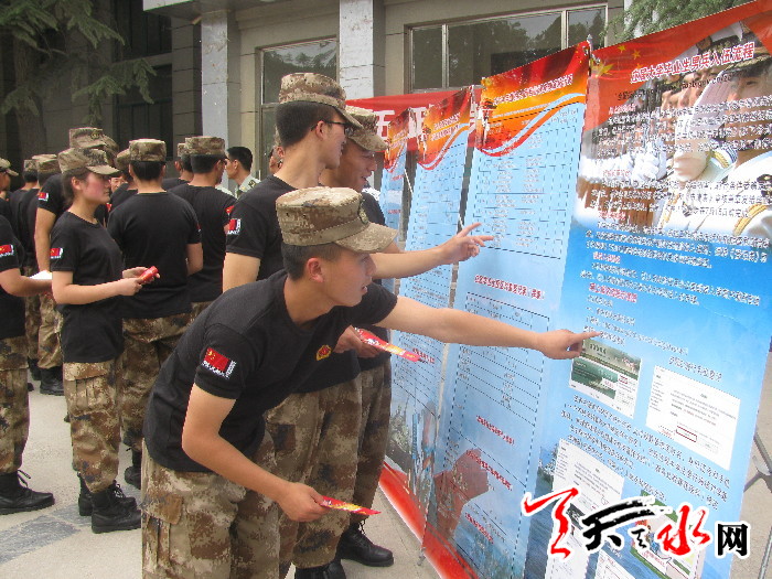 天天天水网讯(通讯员曹广林 李凤旗)“热血男儿精忠报国,优秀青年立志从军”;“入伍就是深造,当兵就是成才”......。一幅幅激动人心、鼓舞斗志的宣传标语让莘莘学子心潮澎湃、热血沸腾。