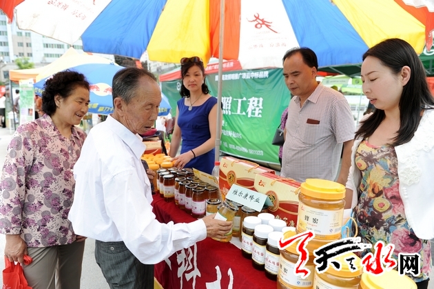 6月10日,市民在龙城广场购买本地食品加工企业的产品。当日,2014年天水市食品安全宣传周活动在龙城广场 启动。本次食品安全宣传周的主题为“尚德守法 提升食品安全治理能力”。 记者 周文瑫 摄