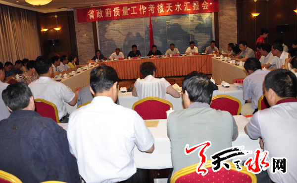 天天天水网讯【记者 赵晓玲】6月10日至11日,甘肃省质监局副局长张矛带领省政府考核组,对天水市2013至2014年质量工作目标责任完成情况进行考核,副市长温利平陪同考核并参加汇报会。