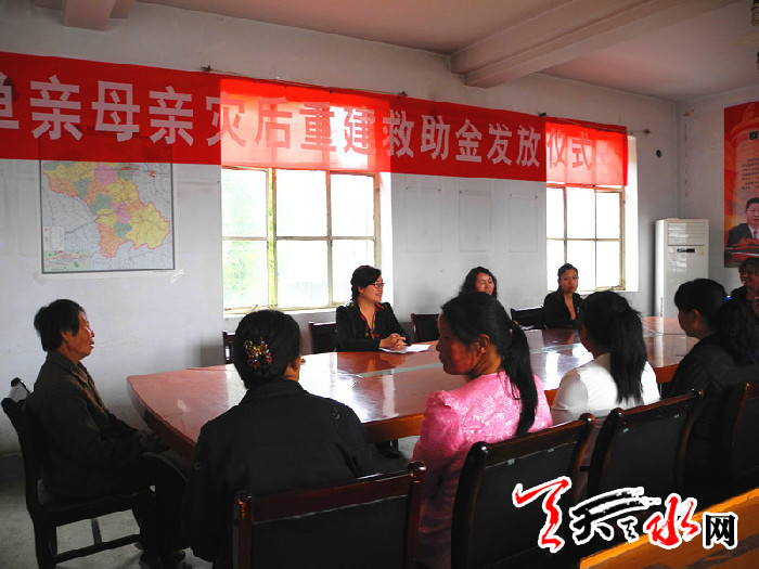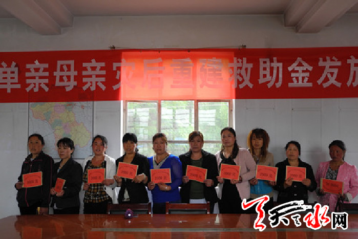 天天天水网讯 6月12日,秦州区妇联在娘娘坝镇举行单亲母亲灾后重建救助金发放仪式,为娘娘坝镇“7.25”暴洪灾后重建的10位单亲贫困母亲发放救助金共2万元。这笔救助金是区妇联通过向省妇联妇基会积极协调争取到的。