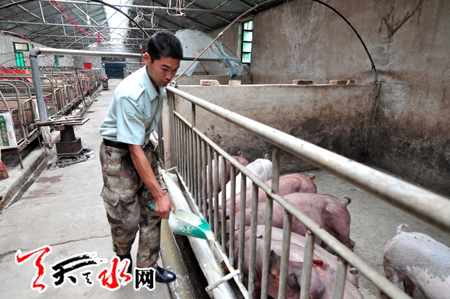 “新梅,水浇好了……”这是6月12日记者在严新梅家采访时,从院外传来的声音。“现在家里人每天都忙得很,给村里人放水,摘自己种植的西瓜,喂猪,从天亮忙到晚上。”严新梅的丈夫康隆元对记者说,家里事多,家里的每个人都有自己的活要干,大儿子智勇2008年12月退伍后,在村里办起了一个养猪场,当了一名“猪官”。现在是武山县第二大养殖户。