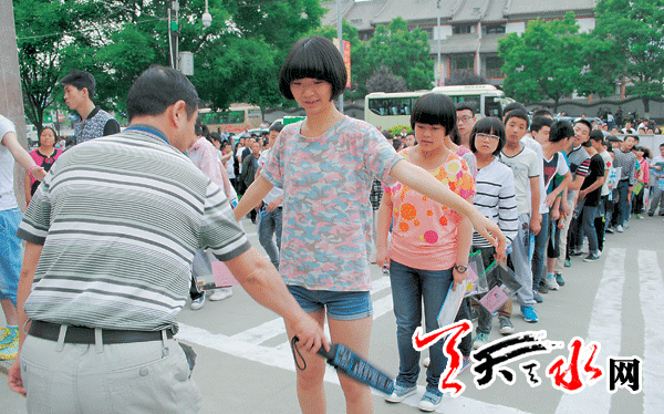天天天水网讯 6月16日,在天水市第三中学考点,参加中考的学生正在排队等待进入考场前的安检。