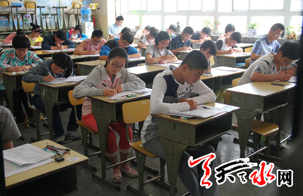 6月16日,我市中考如期开考。参加中考的学生有95057人,其中初三学生46113人,初二参加地理、生物考试学生48944人,考试设置考点62个,考场3187个。记者 徐强 李旺旺 摄