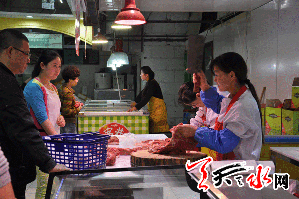6月15日,记者在秦州区坚家河市场大肉销售摊位上了解到,前腿和后腿大肉价格为每斤10.5元。该市场雨润肉食批发部的销售人员说:“三月份肉价还是每斤8元,进入四月,肉价就开始上涨了,到月底精瘦肉涨到每斤13元。”