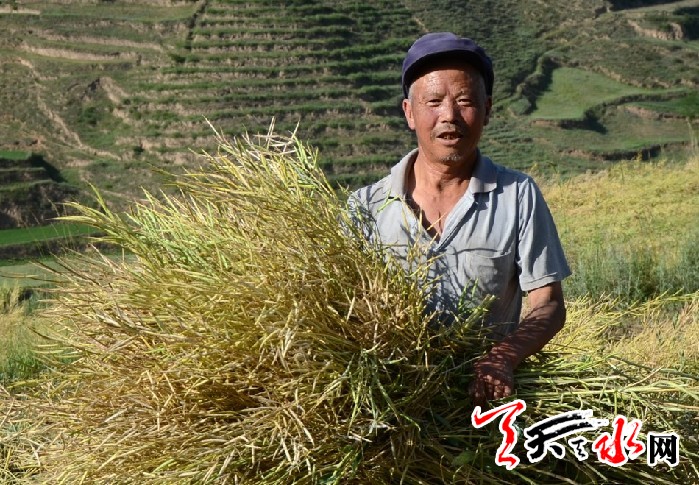 天天天水网讯(通讯员杨兆康)时下正值油菜成熟的季节,在清水县境内,随处可见油菜丰收的喜人景象。在郭川乡、金集镇等乡镇,随处可以见到农民朋友挥舞着镰刀抢收油菜籽的景象,片片金黄的油菜辉映着张张喜悦的笑脸。