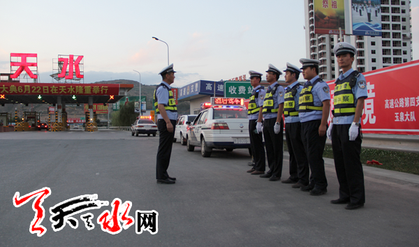 天天天水网【通讯员 赵奇兵】2014年公祭中华人文始祖伏羲大典暨第二十五届中国天水伏羲文化旅游节将于6月22日在天水开幕,节日来临之际,高速公路第四支队玉泉大队认真贯彻全国、全省反恐怖工作紧急视频会议精神,结合厅交管局《关于切实加强当前反恐应急处置工作的紧急通知》(甘公交传发〔2014〕149号)文件要求,以“安全生产月”整治工作为抓手,联合秦州公安分局、武警中队全力做好道路交通安全保畅及反恐维稳安保工作。