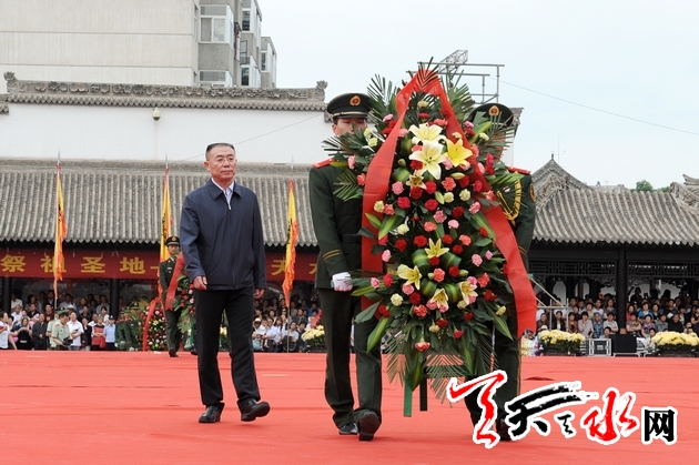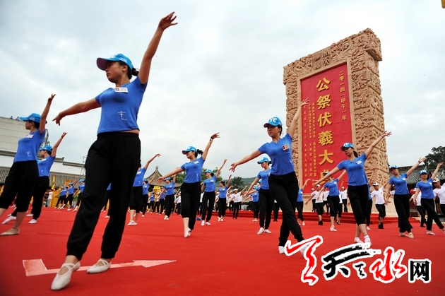 6月20日,2014(甲午)年公祭中华人文始祖伏羲大典在伏羲广场举行预演。市领导王锐、柴金祥、宋尚有、郭奇若、蒋晓强、赵卫东、彭鸿嘉、蒲军、宋德雄、萧菡、王子生、张仲康、张建杰、白晓玲等出席预演活动。当天上午,所有工作及演出人员全部到位,预演严格按照祭祀程序进行,依次为奏乐、击鼓鸣钟、恭读祭文、乐舞告祭、敬献花篮。记者 周文瑫 孙镇 摄