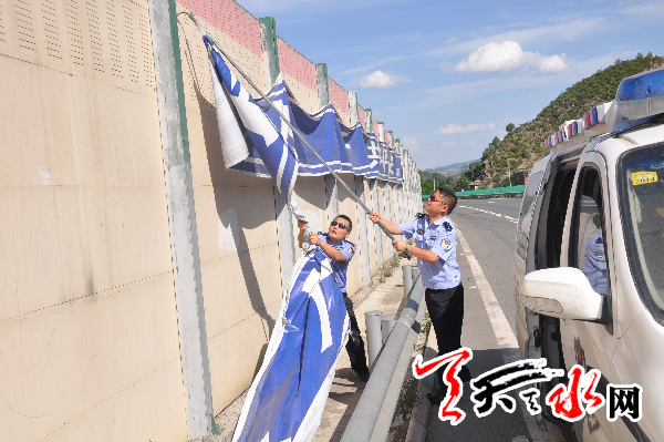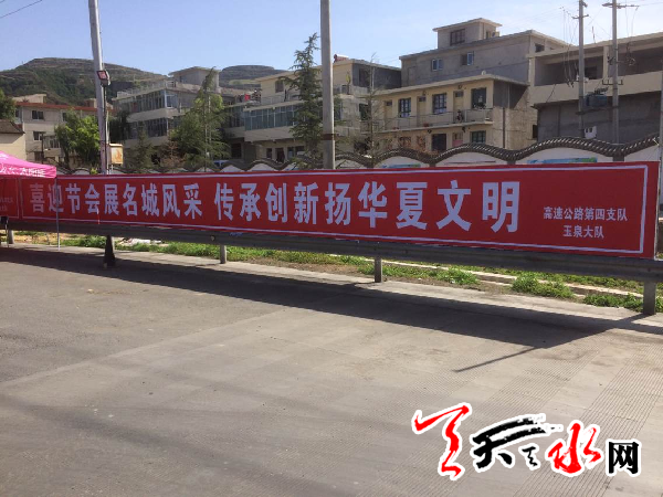 天天天水网【通讯员 王峰】天水伏羲文化节到来之际,高速公路第四支队玉泉大队积极相应天水市委及上级机关要求,多方筹措资金,以“净化交通环境、确保出行安全”为主责,全面更新辖区宣传阵地,对大队辖区路域内破损的宣传横幅及时清理和更换,尤其对天水收费站等市级收费站口的宣传展板及时进行更新,为全力做好第二十五届天水伏羲文化节增光添彩。