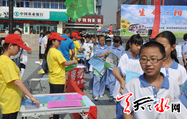 天天天水网讯【记者 李欣桐】6月26日,在联合国确定的第28个国际禁毒日,为贯彻习近平总书记在禁毒工作会议上的讲话精神,强化禁毒宣传教育,提高广大群众的禁毒意识,努力营造浓厚的禁毒宣传氛围,天水市在龙城广场举行以“生命.阳光.爱——携手禁毒——共创平安天水为主题的禁毒宣传教育活动。
