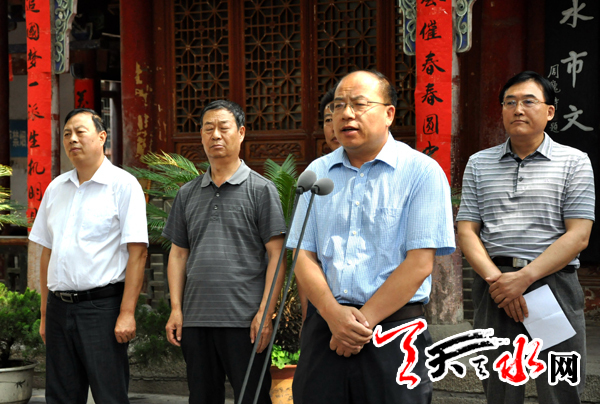 张建杰在开展仪式上致辞,向参加展览的摄影艺术家表示祝贺。他强调,全市各界要紧紧抓住良好机遇,以麦积山石窟为桥梁和纽带,进一步解放思想,振奋精神,坚持改革、开放、发展为主题,从思想上、行动上主动融入丝绸之路经济建设带当中;广大文艺工作者、书画摄影艺术家和新闻工作者,要积极借鉴和总结这次摄影大赛成功举办的经验,深入基层、聚焦当前各项经济社会事业发展前沿,聚焦基层建设和群众工作,牢牢把握丝绸之路经济带建设、关中——天水经济区建设和华夏文明传承创新区建设重点,从中汲取创作元素、激发创作灵感,充分展示好丝绸之路沿线的重点历史遗珍,传承发扬丝绸之路精神,激励全市人民以创新实干精神,全力推进我市社会经济和文化生态建设协调发展。