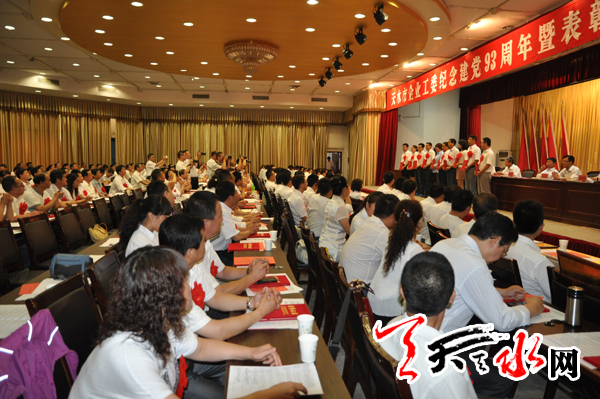 天天天水网讯【记者王晓馨】6月26日,天水市企业工委召开纪念建党93周年暨表彰大会,回顾党的光辉历史,表彰奖励先进,进一步激励全市企业党组织和广大党员牢记党的根本宗旨、发扬党的优良传统,在深入实施“工业强市”战略、推动全市经济社会跨越式科学发展伟大实践中更好地发挥战斗堡垒和先锋模范作用。