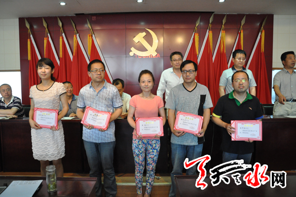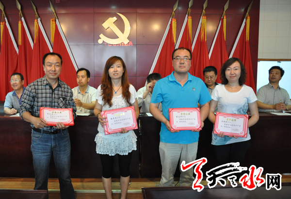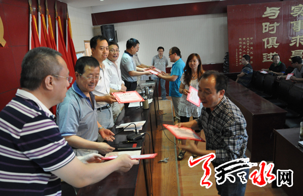 天天天水网讯 7月1日,天水日报社党委召开建党93周年表彰大会。会上社党委组织学习了《中国共产党发展党员工作细则》,对2013至2014年度13位优秀党员进行了表彰,新党员进行了入党宣誓。(记者 常亮)