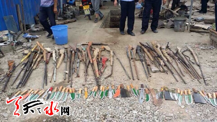 6月26日下午,在局领导的指挥下,甘谷县公安局治安大队选定了销毁场地,勘察了运输路线,组织人员全面清点专项行动中收缴的非法枪支、管制刀具等物品,并登记造册,填写销毁记录。在销毁过程中,治安大队加强了现场守护、警戒,对收缴的68支自制土枪、枪管8支、管制刀具56把集中销毁。销毁结束后,民警对现场进行了清理,确保了绝对安全。