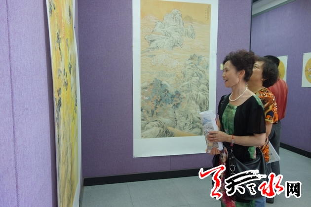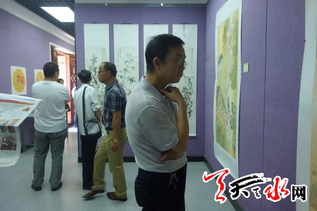天天天水网讯(记者 王红梅)7月2日上午10时30分,在欢快的音乐声中,《印象陇南 走进天水》在我市书画院开展。此次画展由陇南市文学艺术界联合会、天水市文学艺术界联合会共同主办,陇南市美术家协会、陇南市书法家协会、天水市美术家协会、天水书画院共同承办,共展出陇南籍书画名家崔鸿文、王旭升、蒙朝晖、翟友江、张永彩、杨文玉、王建国等7人书画作品100余幅。