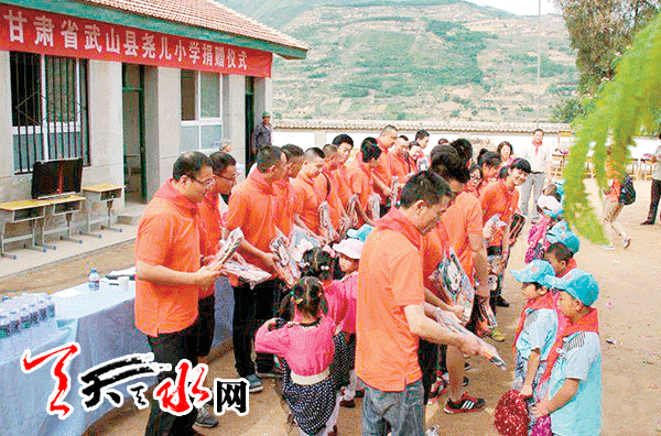 当天,上海晟腾酒店管理有限公司经理沈子灵一行10多人,带着该公司职工对山区孩子的一片关爱与深情,不辞千里来到位于武山东南山区的四门镇尧儿村教学点进行捐赠助学活动,为这里的几十名孩子送来了他们渴盼已久的体育运动设备和学习用品。当身穿红色爱心T恤的叔叔阿姨将崭新的电脑、多媒体电视机、办公桌椅等教学设备抬进校园,款式新颖的书包、跳绳、羽毛球拍、毽子等学习及体育用品发放到孩子们手中时,孩子们欢呼雀跃,连声向叔叔阿姨道谢。