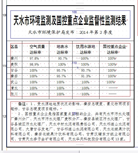 天水市环境监测及国控重点企业监督性监测结果