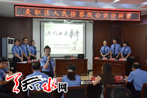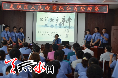 天天天水网讯(通讯员 刘佳)2014年7月8日上午,由麦积区人民检察院主办、秦州区人民检察院及甘谷县人民检察院协办的公诉辩论赛在麦积区人民检察院举行。这次公诉辩论赛为我院与秦州区院和甘谷县院的合作交流提供了平台,同时培养了参赛选手的团队协作能力。