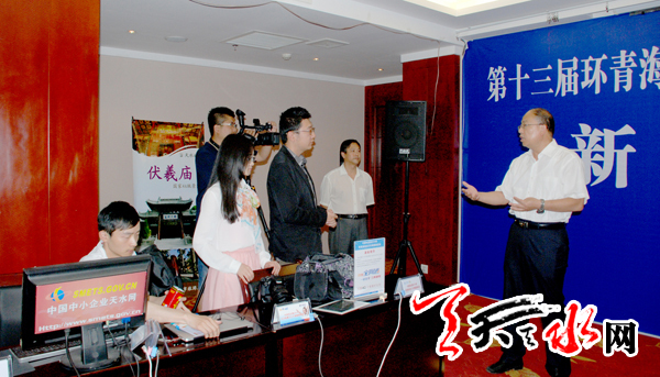 天天天水网讯【记者 杨璟 实习生张小龙】 7月14日下午,市委常委、宣传部长彭鸿嘉来到华天电子宾馆四楼的第十三届环青海湖国际公路自行车赛天水赛段新闻中心,看望了环湖赛随行媒体记者和新闻中心工作人员。