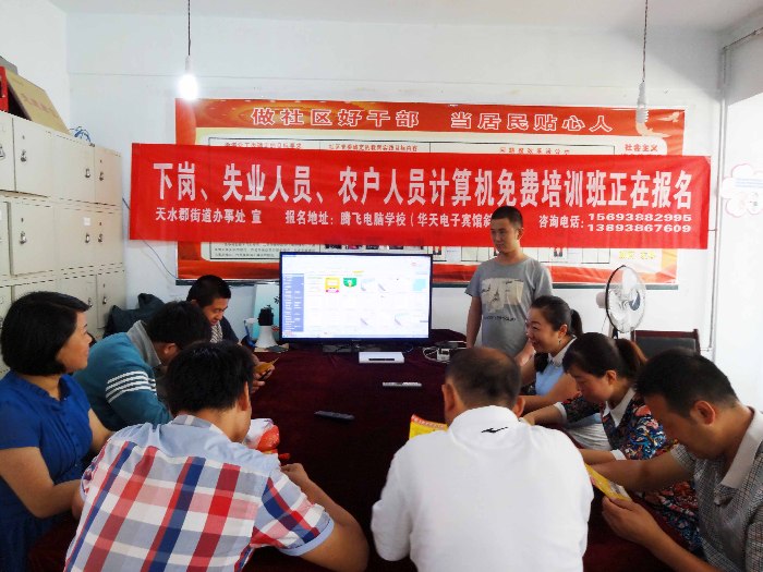 天天天水网讯(通讯员 姚芳芹 高娜)根据天水市、秦州区两级人力资源和社会保障局《关于2014年就业、创业职业技能培训工作》的安排要求,7月17日,天水郡办事处瀛池社区联合天水腾飞职业技术学校开展计算机免费培训。