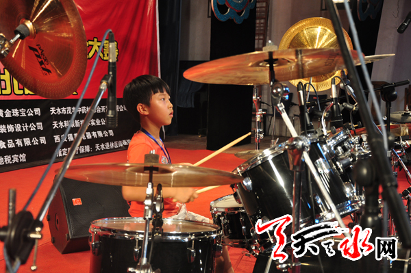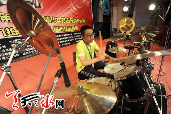 天天天水网讯 7月17日,参加甘肃省首届爵士鼓大赛的选手正在比赛。甘肃省首届爵士鼓大赛暨第九届全国青少年打击乐比赛西北分赛、九拍中国未来之星选拔赛