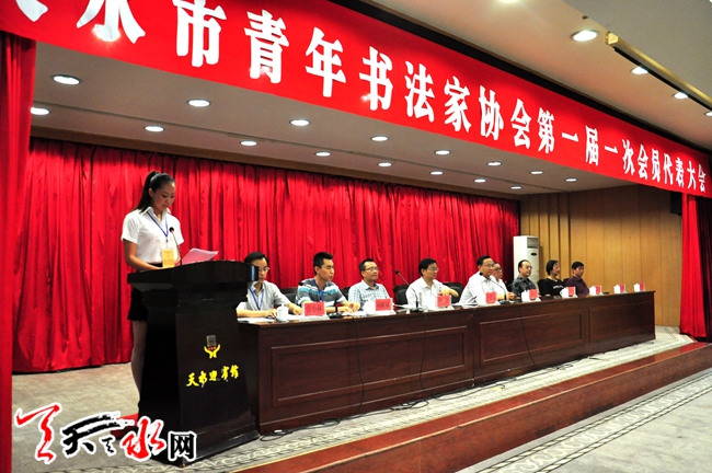 天天天水网讯(记者何永德)7月20日上午,天水市青年书法家协会成立暨第一届一次会员代表大会在迎宾馆召开。天水市政协副主席王振宇,市文联、甘肃省书法家协会等单位及民间社团组织的相关人员参加了成立仪式。