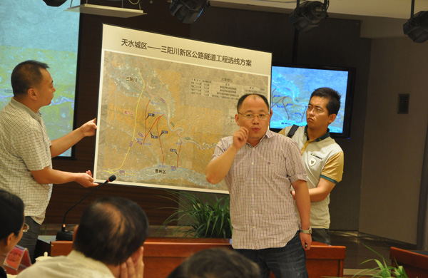天天天水网讯【记者 童强 实习生 张小龙】7月23日,市政府召开曲溪城乡供水项目论证会,邀请中国工程院院士王梦恕,中铁工程设计咨询集团有限公司城市轨道交通设计研究院院长、高级工程师石山,清华大学研究员、博士后、中国交通运输协会交通与产业规划委员会副主任梁军平就白家河自流隧洞及秦州三阳川隧道工程中的技术难题进行详细分析论证。