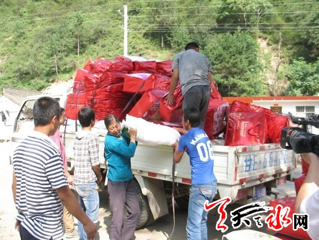 当志愿者们把救灾物资送到灾情一线的时候,受到了群众极大的欢迎。当时因为道路中断,物资只能送到半路,有些群众大老远就来接志愿者,大家一起把救灾物资扛到灾民安置点。