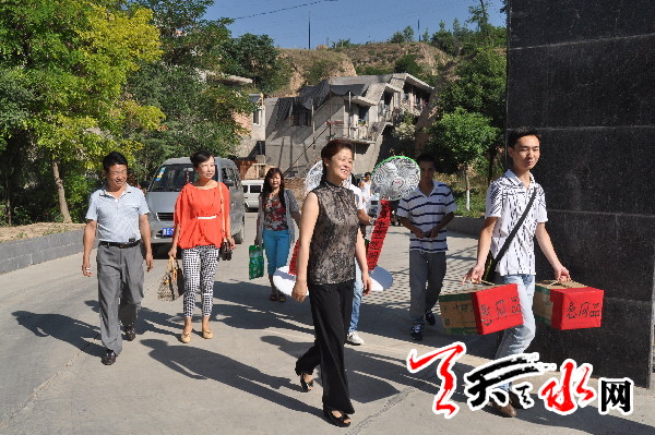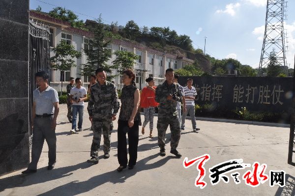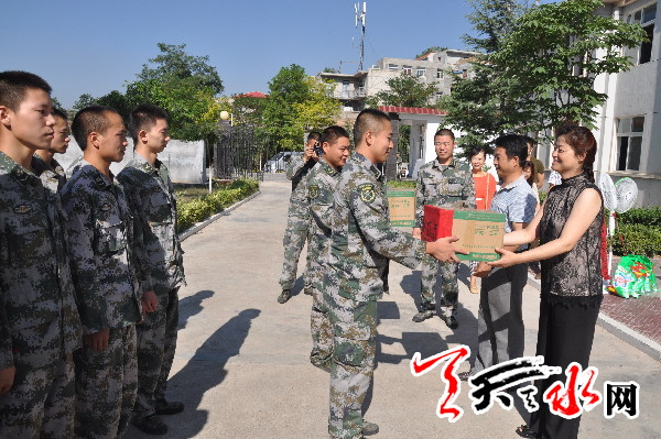 天天天水网讯【记者蔚军平】7月24日,在“八一建军节”来临之际,秦州区七里墩街道办以及岷山社区的干部、职工带着对人民子弟兵以及军属的一片深情厚谊,分别来到辖区68036部队20分队以及军属葛波、军嫂王旭玲家中,共叙军民鱼水情,向他们致以节日的问候和美好的祝愿,并向他们赠送了电风扇、洗涤用品等慰问品。
