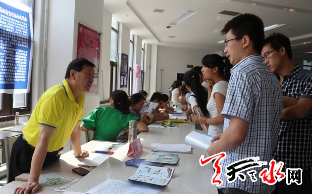 天天天水网讯(通讯员郭文杰 移红霞) 7月26日,2014年天水市夏季大型人力资源招聘洽谈会现场人头攒动,各类求职人员与用人单位面对面洽谈,寻找自己合适的岗位和适合的人才。今年全市夏季大型人力资源招聘洽谈会签订意向性就业协议2175 人,现场洽谈成功 837人。