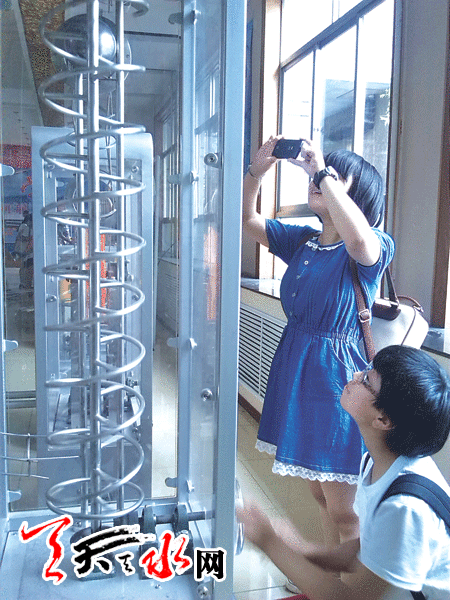 天天天水网讯 7月27日,几名学生参观中国流动科技馆甘肃巡回展。此次展览以“体验科学”为主题,设置了声光体验、电磁探秘、运动旋律、数学魅力、健康生活、数字生活等10个主题展区,50余件互动展品与科学表演、科学实验及科普影视相结合,为公众提供了参与科学实践的场所,让人们享受科学馆互动体验式的科普教育,感受科学魅力,在体验中激发科学兴趣,在探索中树立科学精神,在思考中启迪科学智慧。展览自7月初在我市开展以来,已有数千人参观展览。据了解,展览将持续到9月。 (记者 何郁 )