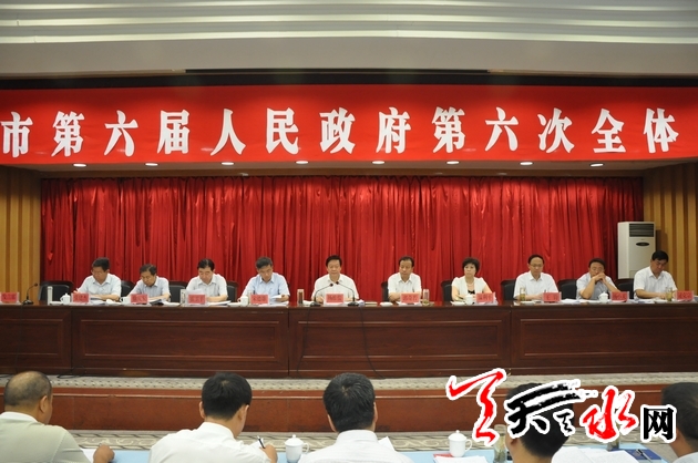 天天天水网讯【记者 杨璟 实习生 陈蓉】 7月28日上午,天水市委副书记、市长杨维俊在天水迎宾馆主持召开市第六届人民政府第六次全体会议,分析研判上半年经济形势,安排部署下半年政府工作。市委常委、常务副市长郭奇若,市委常委、副市长宋德雄,副市长温利平、霍卫平、王钧、徐庆宏、杨小天、张建杰,市政府秘书长逯克宗出席会议。