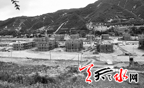 尤其在钱家坝重建安置点的一大片工地上,几十架塔吊伸着长长的吊臂在不停地运转,建设工人们在8个标段上头顶烈日紧张施工,35栋安置楼房已拔地而起。在附近的山坡上,治理地质灾害的挖掘机在紧张地忙碌,山坡下的衡重挡土墙雏形初现,施工人员正在修葺排洪导渠。河道边,有的堤坝已经砌好,有的正在由机械碾压夯实、只待砌筑堤面。