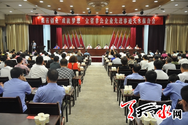【天天天水网讯】(记者 吕薇 实习生 曾钰稼)7月30日,由省工商局、省非公经济发展办公室、省个体劳动者协会、省私营企业协会联合举办的“艰苦创业、成就梦想”全省非公企业先进事迹报告会在我市举行。副市长温利平出席汇报会。