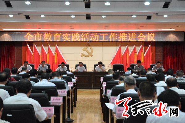 天天天水网讯【记者 王晓馨】8月6日,全市教育实践活动工作推进会议召开。会议传达学习了中共中央政治局常委、中央党的群众路线教育实践活动领导小组组长刘云山在部分省区市教育实践活动工作座谈会上的讲话精神,贯彻市委常委会议和市委全委扩大会议精神,总结全市教育实践活动前段工作,安排部署近期重点工作。