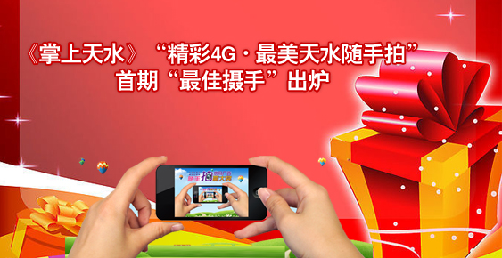 为进一步弘扬社会主义核心价值观,增强天水广大群众对中华民族优秀传统文化的认同,天水日报社、电信天水分公司、 移动天水分公司在我市首家手机新闻客户端《掌上天水》上,联手发起了“精彩4G。最美天水随手拍”活动,活动从即日起向广大读者和网友征集手机拍摄照片,对于优秀作品主办方将予以话费奖励。
