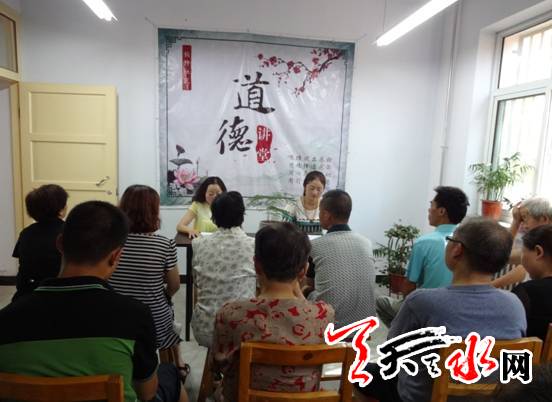 天天天水网讯 (通讯员 缑文婷)7月13日,秦州区七里墩办事处长开社区举办《道德讲堂》,向社区居民讲述了长开社区身边好人、热心于公益事业的刘世禄的优秀事迹。