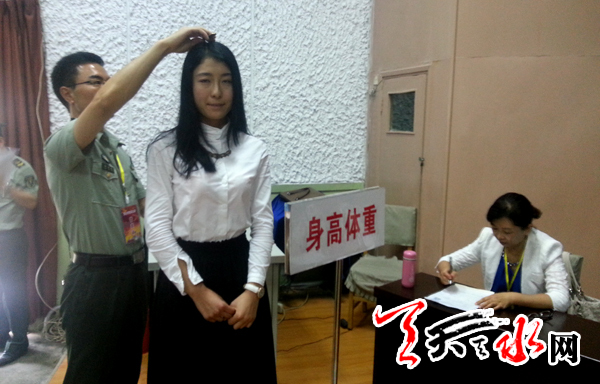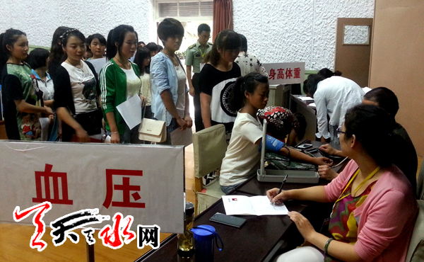 天天天水网讯 8月12日上午,天水市今夏女兵公开征集初审初检工作正式开始, 全市应征女青年在市征兵办统一安排下,来到市广播电视大学征兵体检站接受初检和初审。
