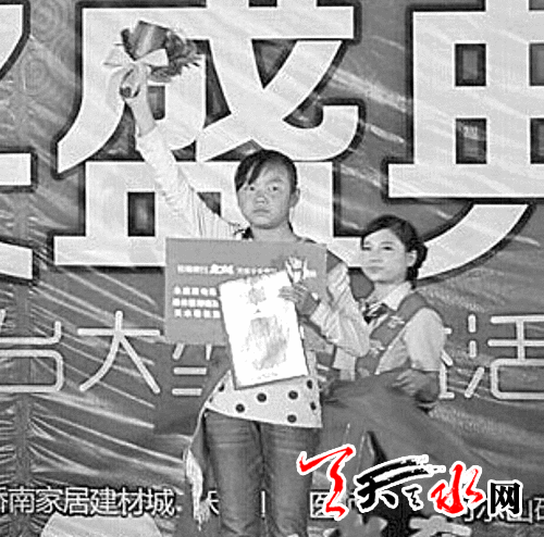 8月11日,甘肃银行2014天水十大孝心人物评选活动颁奖盛典在龙城广场隆重举行。清水县草川铺乡腰林村少女赵丽丽获得2014天水十大孝心称号并登台领奖。