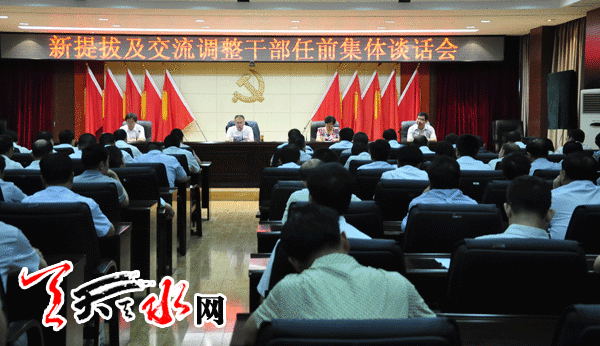 天天天水网讯 【记者 赵晓玲】8月19日,中共天水市委召开新调整补充干部任前集体谈话会,中共天水市委书记王锐出席会议并讲话,要求新任职干部要正确对待岗位调整,倍加珍惜市委的信任与重托,以崭新的精神面貌投入到新的岗位和新的工作当中,努力为全市经济社会转型跨越发展做出新的更大的贡献。