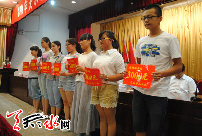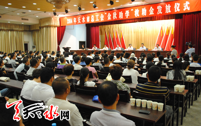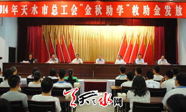 天天天水网讯【记者 童强】 8月19日,天水市总工会举行2014“金秋助学”救助金发放仪式。市直37户困难企业的100名高考二本以上正规院校录取的困难家庭学子获得“金秋助学”资金帮助。