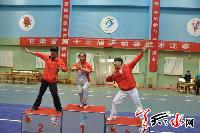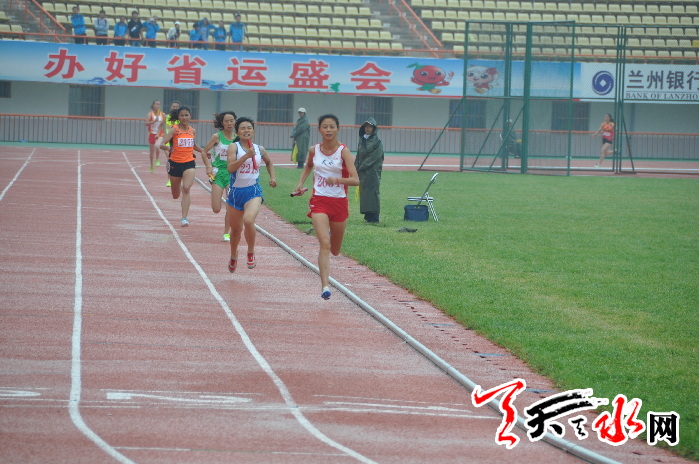 在细雨中,青少年男子20000米竞走甲组和乙组同时开赛,我市选手吴鹏和周小军分别参加了甲组和乙组比赛,周小军以1小时33分24秒58的成绩夺得乙组冠军,比第二名快了6分钟多。吴鹏也夺得甲组冠军。在女子成年组4×400米比赛中,由李丹、梁钰秀、孙博、梁丽组成的天水队在第二棒便确立了领先优势,最终以3分59秒96的成绩率先冲过终点。这个项目是我市最后一个冲金项目,四位美女为我市比赛划上了完美的句号。