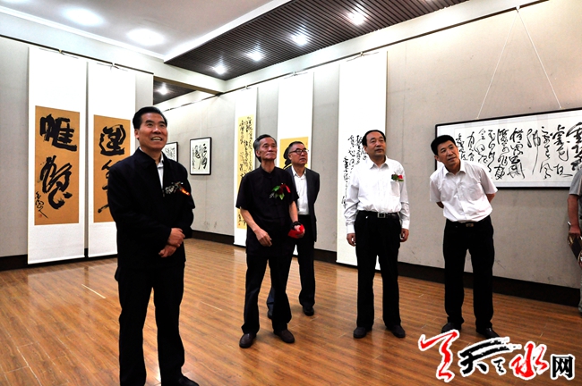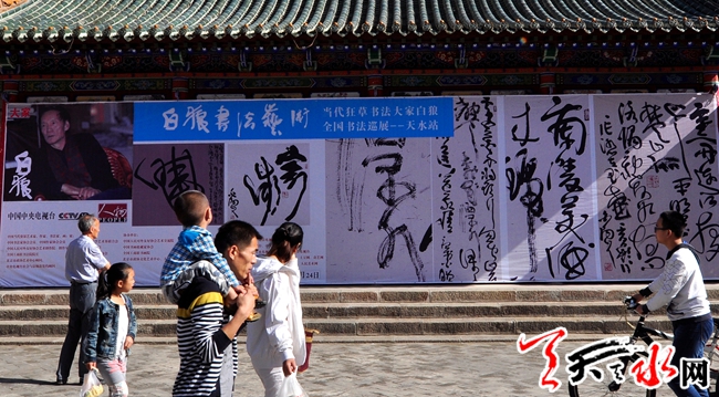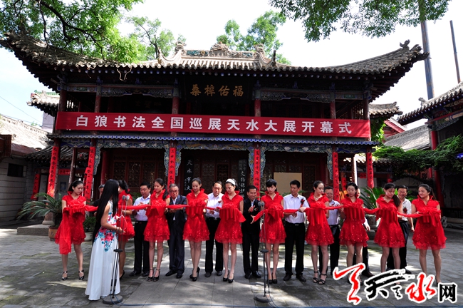 天天天水网讯(记者何永德) 8月24日上午,书法界颇具影响力的当代狂草书法大家白狼全国书法巡展——天水站开展,天水市人大主任柴金祥、副主任张仲康、市政协副主席安志宏及甘肃省书协、天水市文联等相关单位和书法爱好者参加了开展仪式。