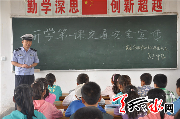 天天天水网讯【通讯员 赵建新】为进一步推进交通安全宣传进校园活动扎实开展,充分发挥道路交通安全宣传“小手拉大手”辐射作用,强化广大师生的交通安全意识和法制意识,创建平安校园、和谐校园,有效预防和减少学生道路交通事故。9月1日,高速公路第四支队玉泉大队组织宣传民警深入辖区中小学,通过上交通安全宣传教育课、播放警示教育光盘、签订《交通安全责任书》等方式,扎实开展了“开学第一课”宣传教育活动。