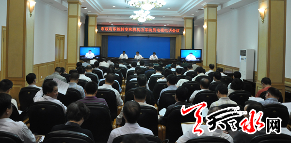 天天天水网讯【记者 杨璟】 9月4日上午,天水市政府职能转变和机构改革动员电视电话会议召开。中共天水市委副书记、市长杨维俊强调,要站在全局的高度,充分认识政府职能转变和机构改革的重要性和紧迫性,把握方向,突出重点,积极稳妥地做好政府职能转变和机构改革工作。