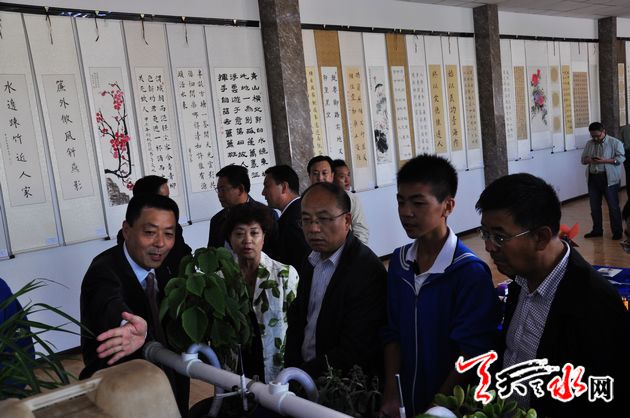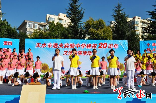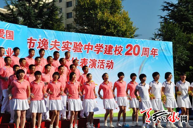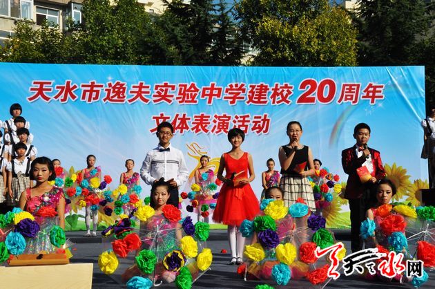 天天天水网讯【记者 徐强】 9月19日下午,天水市逸夫实验中学举行了建校20周年科技体育艺术成果展演,喜庆20年华诞。市委常委、宣传部长彭鸿嘉、市人大常委会副主任赵建强、副市长张建杰、市政协副主席白晓玲出席庆祝活动,并参观了师生书画及科技小制作展,观看了文体表演。张建杰在庆典仪式上,代表市四大组织向市逸夫实验中学表示热烈祝贺。