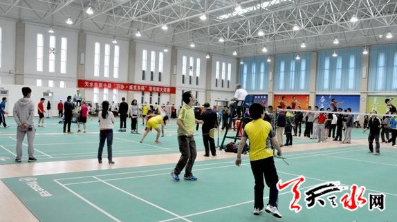 9月20日,由天水市体育局、市体育总会主办,市羽毛球协会承办天水市第十届羽毛球大奖赛在肃机电学院开赛,全市330多名运动及爱好者将参加男女单打、双打、混合双打,和老年双打、混合双打等项目的比赛。市领导宋德雄、张建杰出席比赛开幕式。   记者 郝勤学 摄